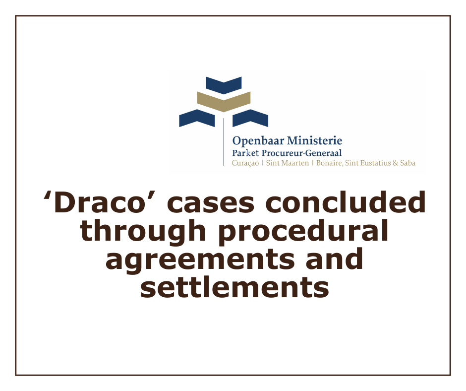 PHILIPSBURG, St. Maarten - The Prosecutor’s Office (OM) announced today that the “Draco” case has been concluded on appeal by the Joint Court of Justice, taking into account the procedural agreements reached between the OM and the suspect S.J.M. and his defense attorneys, mr. Safira Ibrahim and mr. Marcel van Gessel. In addition, the Draco confiscation case and the related cases “Draco 2” have been concluded through financial settlements. This means that all ongoing criminal and confiscation cases against S.J.M. have now been finalized.